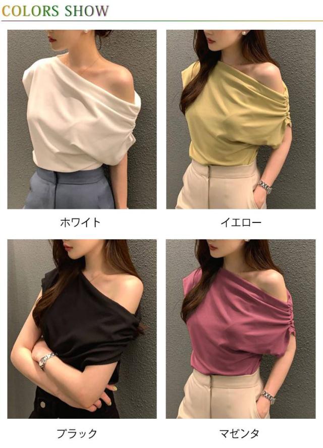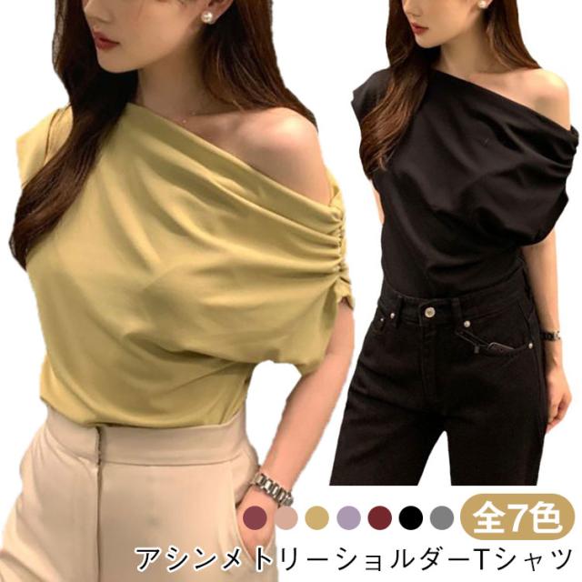 レディース ショルダーTシャツ 夏服 アシンメトリー ショルダーTシャツ 半袖tシャツ 斜めショルダー 肩出し トップス 夏用 半袖 大人 セクシー 全7色
