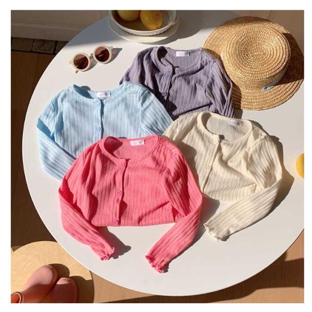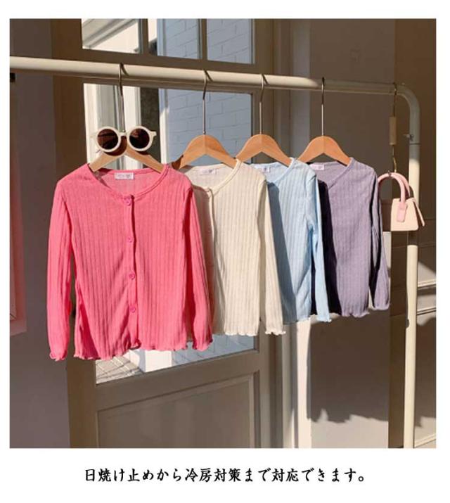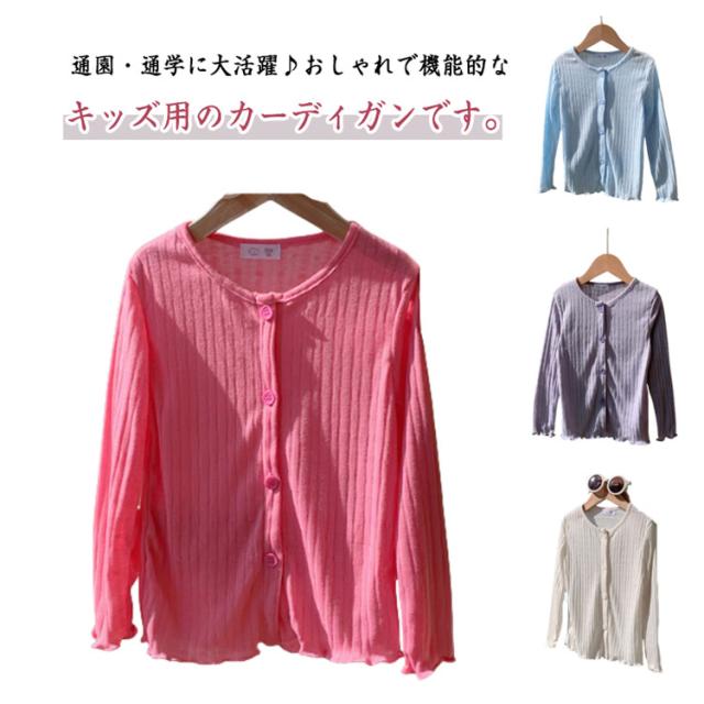 UVカット 長袖 キッズ服 カーディガン 女の子 キッズ服 ニットカーディガン 日焼け止め ラッシュガード 可愛い 羽織り アウター 冷房用 無地 リブニット 子供服 お洒落 春夏 90-140 可愛い