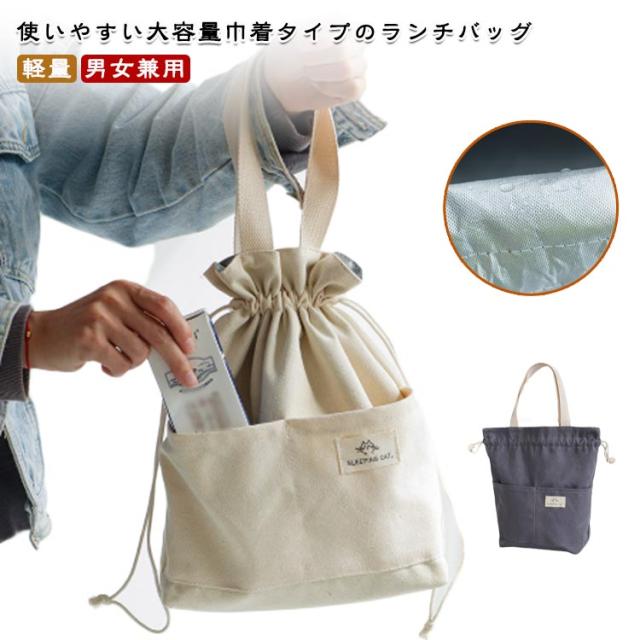 保冷バッグ お弁当袋 おしゃれ ランチバッグ 巾着ランチバッグ 巾着袋 保冷 手提げ お弁当バッグ 大容量 通勤 巾着タイプ 軽量 お弁当入れ 丈夫 持ち手付き 男女兼用 保温 通学 無地 シンプル ポケット付き ギフト プレゼント