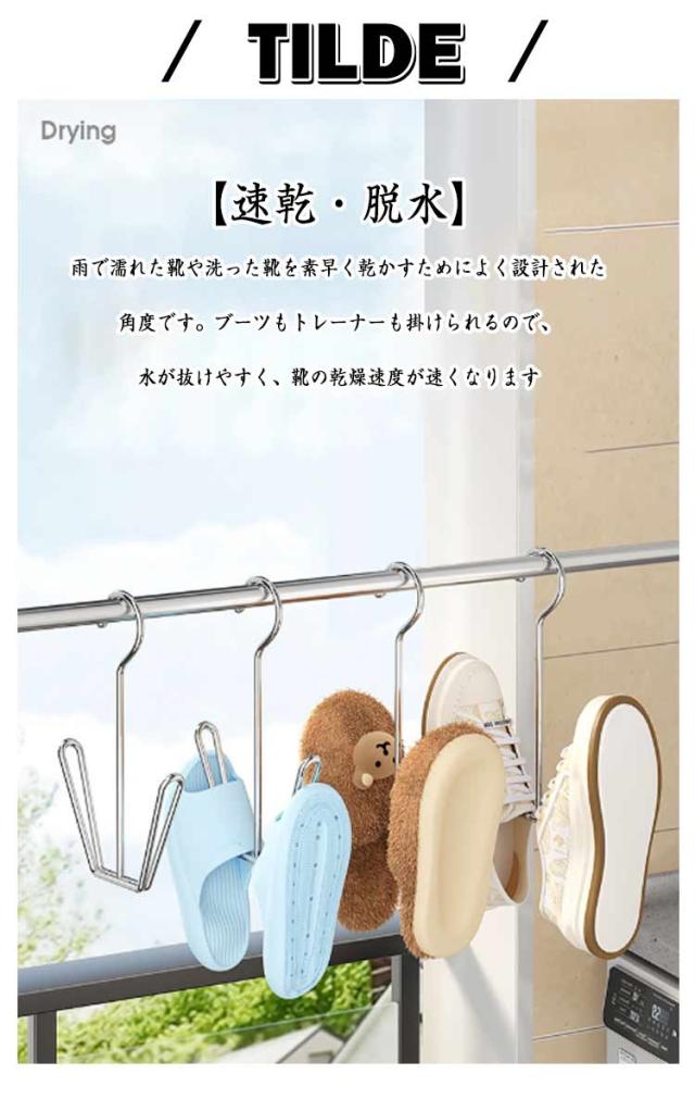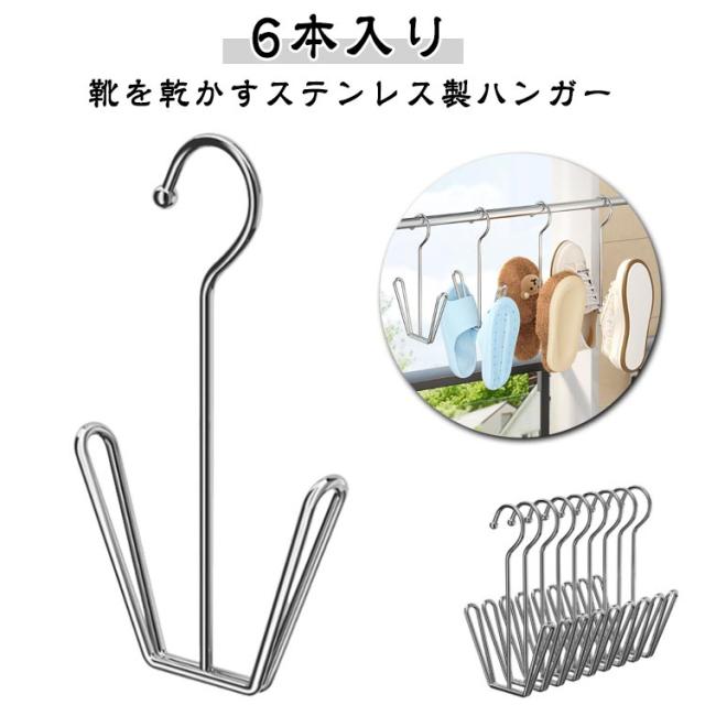 6本入り 吊り干し靴干しハンガー 物干しハンガー シューズハンガー ステンレス鋼 防風 ランドリーハンガー 室内干し 靴乾燥ラック 外干し 靴ハンガー 靴 省スペースステンレスハンガー 滑り止め バスブーツホルダー シューズハンガー 運動靴 上履き