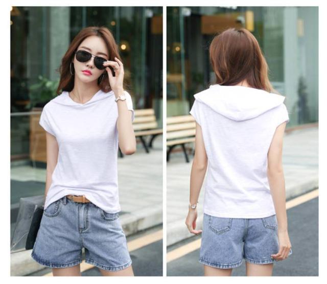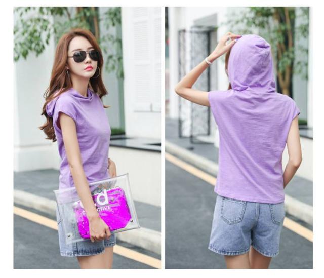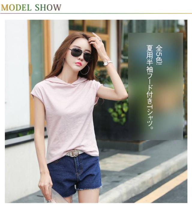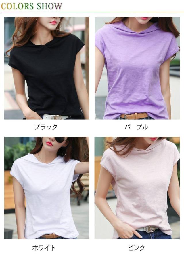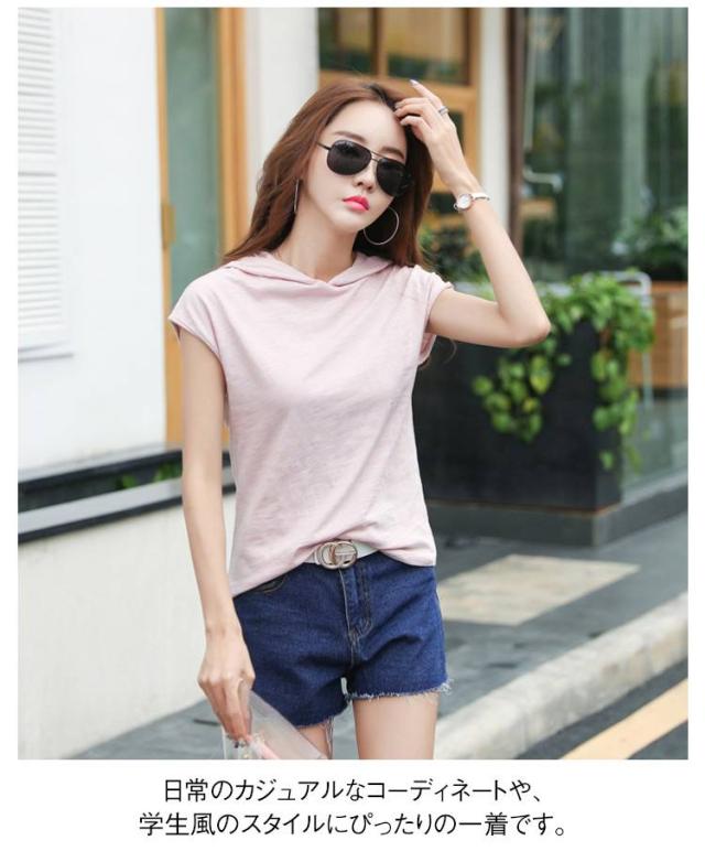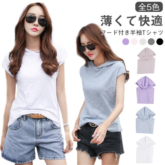 夏用 半袖 Tシャツ レディース 薄手 ゆったり インナートップス カットソー フード付きトップス フード付き スポーツウエア 柔らかい 無地 夏服