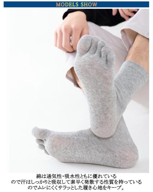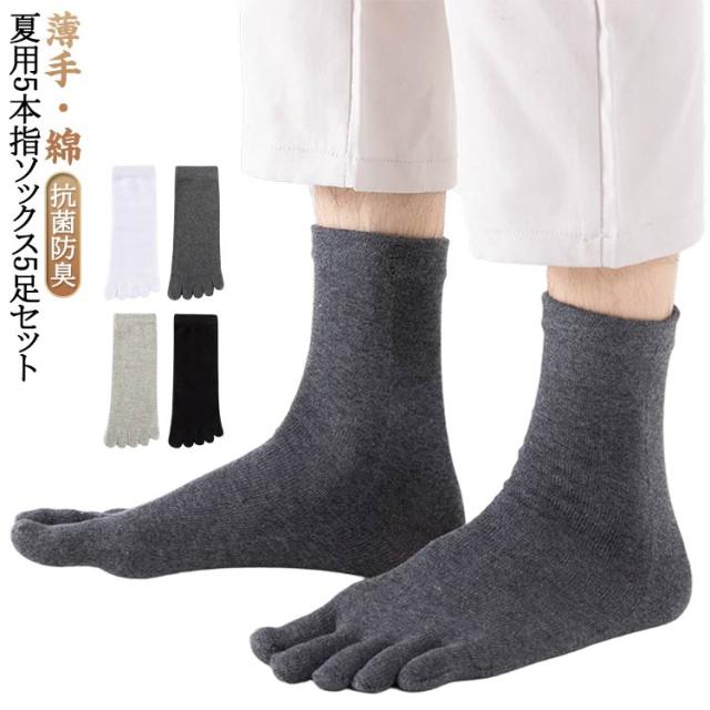 通気 男性 五本指靴下 5本指ソックス 薄手 メンズ 五本指ソックス メンズ カジュアル クルー丈 5足セット 綿 吸湿 抗菌防臭 ビジネスシーン スニーカー 蒸れない 白 黒 グレー 無地 消臭 夏用