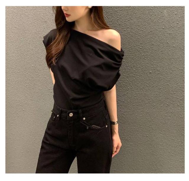 半袖 アシンメトリー 半袖tシャツ ショルダーTシャツ 夏服 斜めショルダー ショルダーTシャツ 肩出し 夏用 トップス カットソー 大人 セクシー 全7色