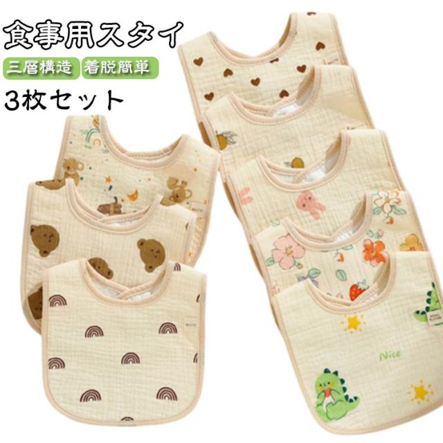 3枚セット 防水 U型 よだれかけ 食事用スタイ 赤ちゃん 三層構造 出産祝い ベビースタイ 防水スタイ 3枚セット 可愛い 男の子 女の子 前掛け 新生児 柔らかい 無地 着脱簡単 保育園用 入園準備