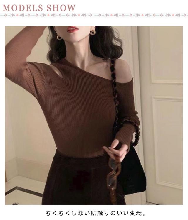 ワンショルダー オフショル トップス 秋冬 オフショルダー ニット ワンショルダー トップス 長袖 ニットプルオーバー セーター ニットソー レディース カットソー 細見え リブニット シンプル おしゃれ カジュアル フェミニン 春 秋 冬
