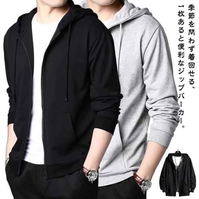 おしゃれ 大きいサイズ ジップパーカー パーカー 綿 スウェットパーカー 羽織り パーカー フード付き カジュアル 前開き パーカー 春 無地 トップス 春秋 ルームウェア 無地 ゆったり メンズ シンプル ウォーキング スポーツ グレー