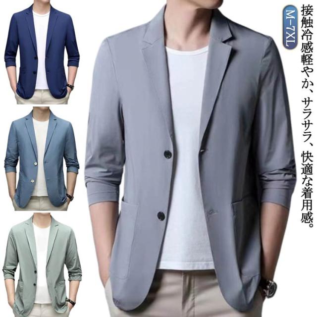 大きいサイズ 夏 テーラードジャケット サマージャケット ジャケット アウター ゴルフ 長袖 接触冷感 ゴルフ メンズ 涼しい 薄手 普段着 カジュアル 仕事 紳士服 オフィス 春夏秋 軽い 薄い 無地 クールビズ ビジネス