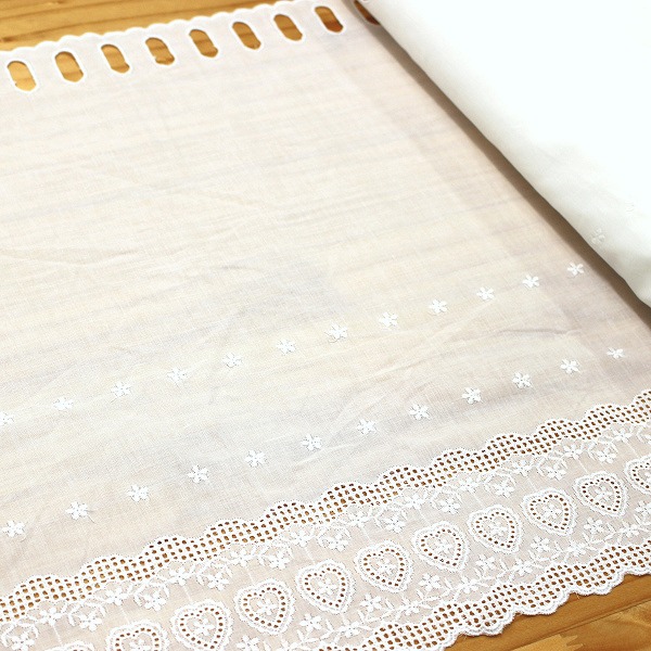 【10cm単位価格】 ローンカフェカーテン ハート 小花 ボーダー柄 OW 平織り ローンレース 綿100% 生地 布 約43cm丈 9896-2 ゆうパケット3m対応 ( ハンドメイド 手作り 手芸 裁縫 洋服 カーテン ブラウス チュニックワンピース かわいい 雑貨 )
