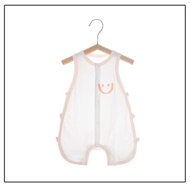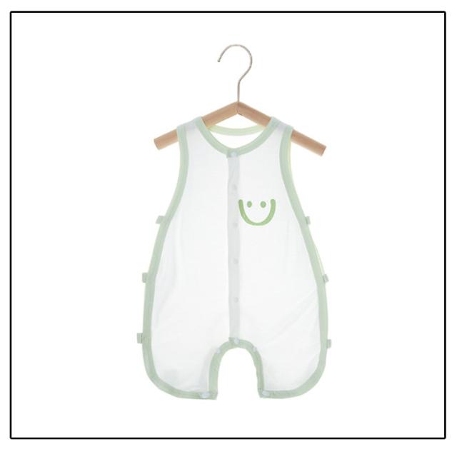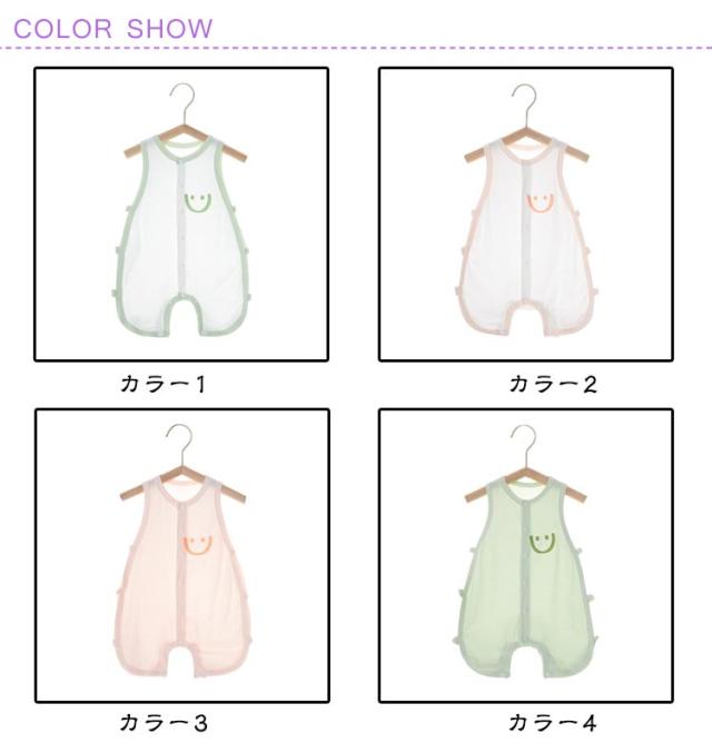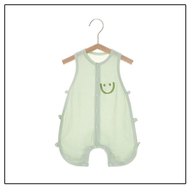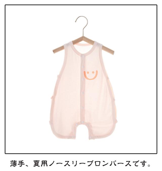 | 薄手、夏用ノースリーブロンパースです。 寝かせたままのお着替えもラクチンなボタンの前開きタイプで、肌着としてはもちろん、お部屋着としても大活躍の人気アイテムです。 横方向によく伸びるので肌にフィットして見えない汗も良く吸収します。 | |