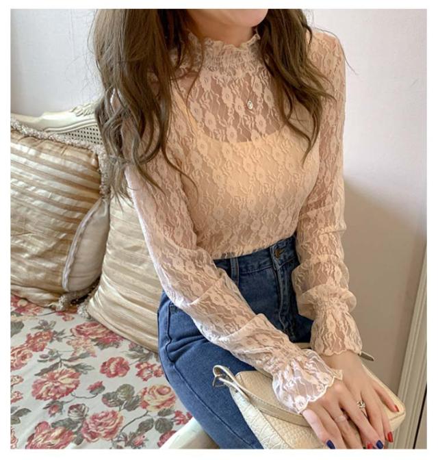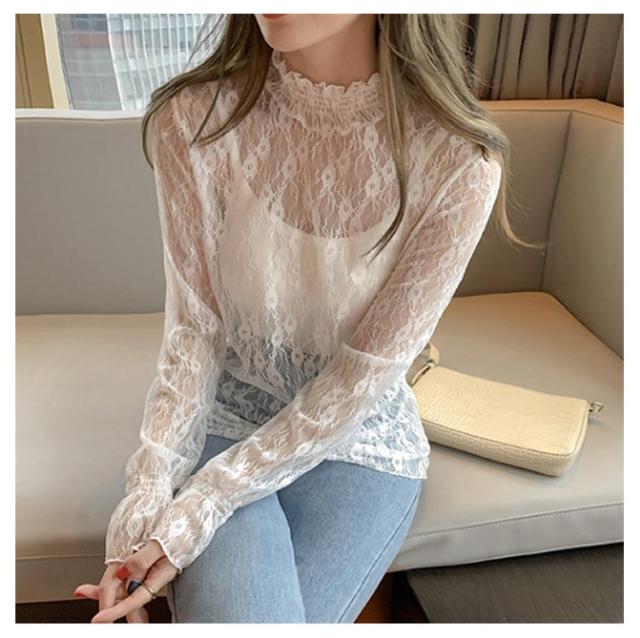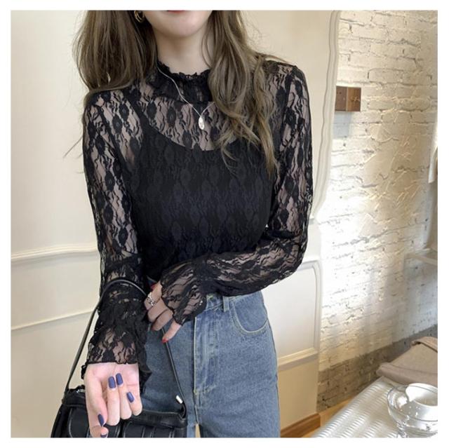 シーアーブラウス タートル レディース 長袖 シアー レース タートルネック シースルー 透け感 春 レディース チュール シアートップス セクシー トップス 肌透け ハイネック メッシュ カットソー オフィス レイヤード ドット柄 紫外線対策