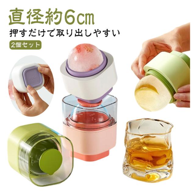 アイスボールメーカー 柔らかい 2個セット 丸い氷 6cm 丸氷 製氷器 シリコン 透明な氷 取り出しやすい 製氷機 丸型 押すだけ 球形氷 家庭用 蓋付き 大粒 溶けにくい 製氷皿 冷凍保存 耐久 夏用 アイストレー 製氷トレー 冷凍