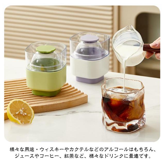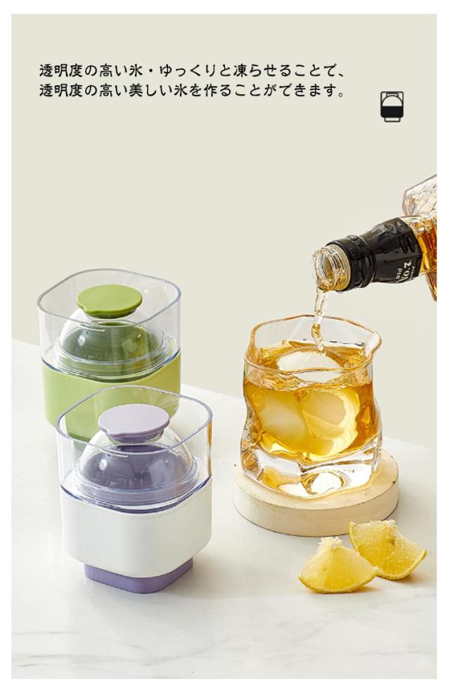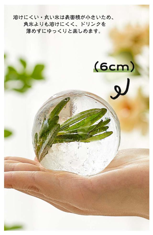 | アイスボールが自宅で簡単に作れる!【直径約6cm】【2個セット】【押すだけで取り出しやすい】 ■溶けにくい・丸い氷は表面積が小さいため、角氷よりも溶けにくく、ドリンクを薄めずにゆっくりと楽しめます。 ■透明度の高い氷・ゆっくりと凍らせることで、透明度の高い美しい氷を作ることができます。 ■様々な用途・ウィスキーやカクテルなどのアルコールはもちろん、ジュースやコーヒー、紅茶など、様々なドリンクに最適です。 ■簡単に使える・水を入れて冷凍庫に入れるだけで、簡単に丸い氷を作ることができます。 ■お手入れ簡単・シリコン製なので、使用後は水洗いして清潔に保てます。 | |