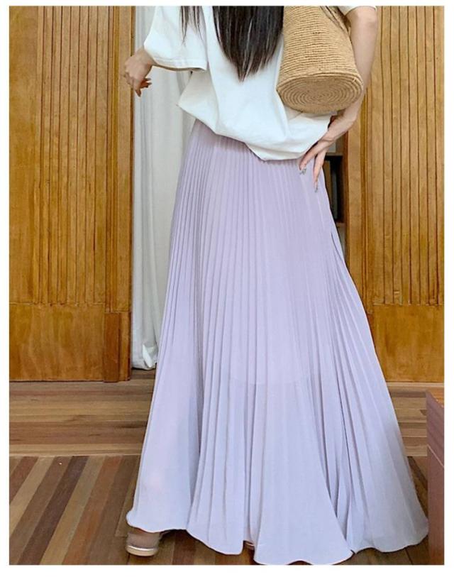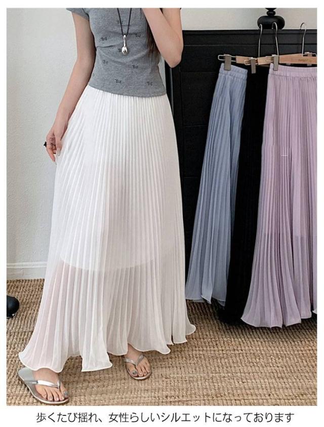 | ウエストゴムのシフォンプリーツスカートです。 ロング丈ですので、足を見せたくない方にもオススメです。 落ち着いた色合いで、トップスとも合わせやすくコーディネートに困りません。 歩くたび揺れ、女性らしいシルエットになっております | |