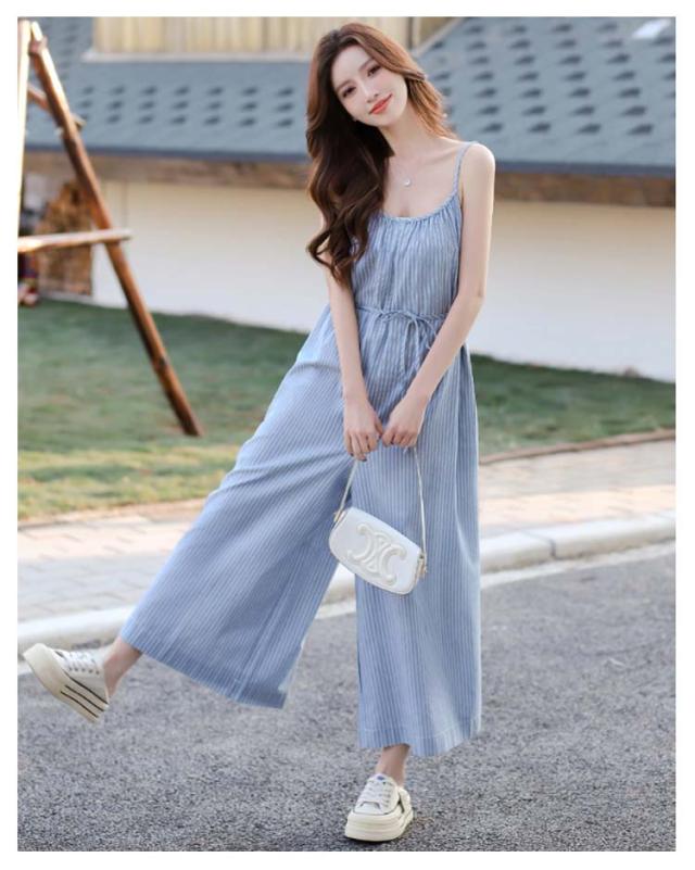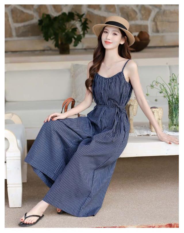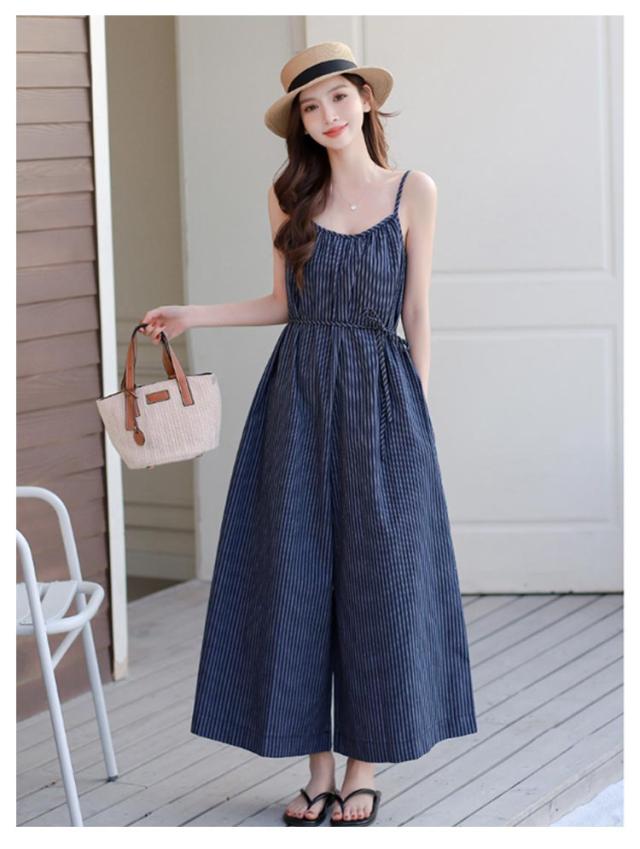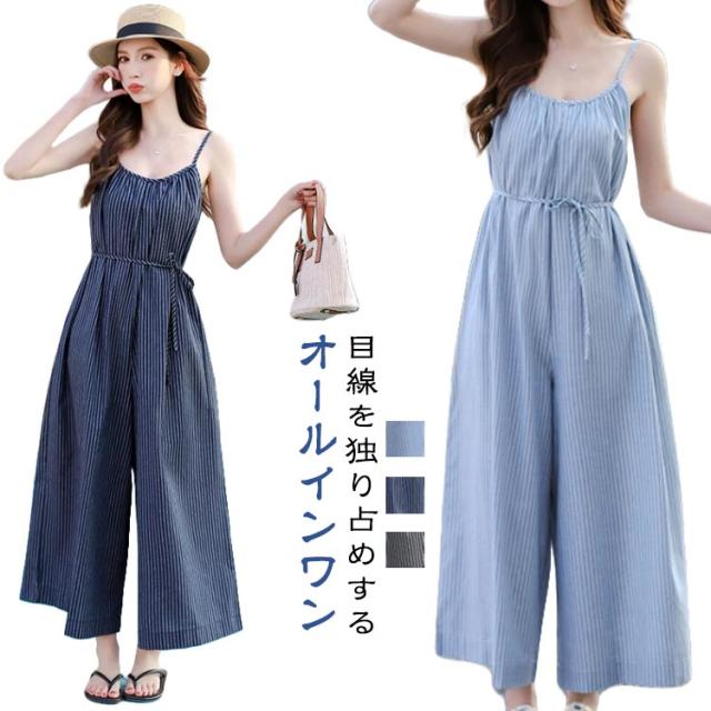 柄 ストラップ レディース サロペット ガウチョ オーバーオール オールインワン ウェスト紐ゆったり ウェスト紐ゆったり サロペットパンツ ワイドパンツ おしゃれ 大きいサイズ ワイドサロペット ワンピース 春夏 キャミソール 抜け感 ガウチョパンツ 黒 ブラック ネイビー