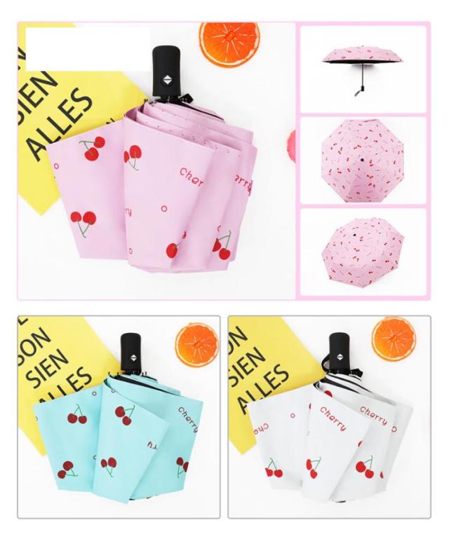 | 高密度の耐衝撃性生地、テクニカルコーティングは軽量で撥水性があります。 紫外線を効果的にブロックするマルチプロセス黒接着剤日焼け止め 丈夫な8本リブ構造 繰り返し伸び続ける高品質スプリング 無地とフルーツ柄をご用意 | |