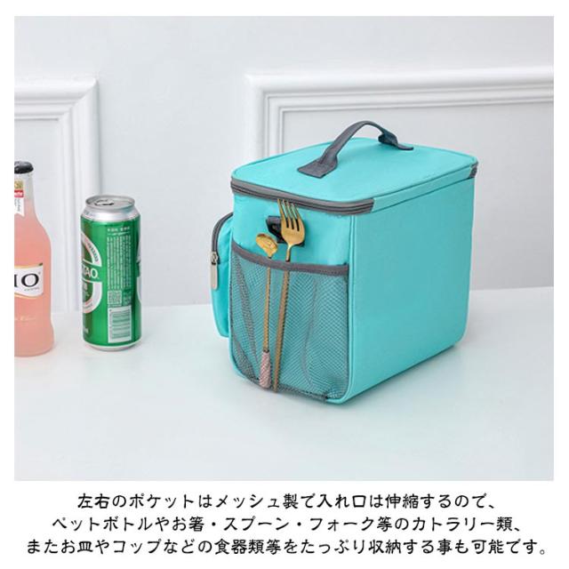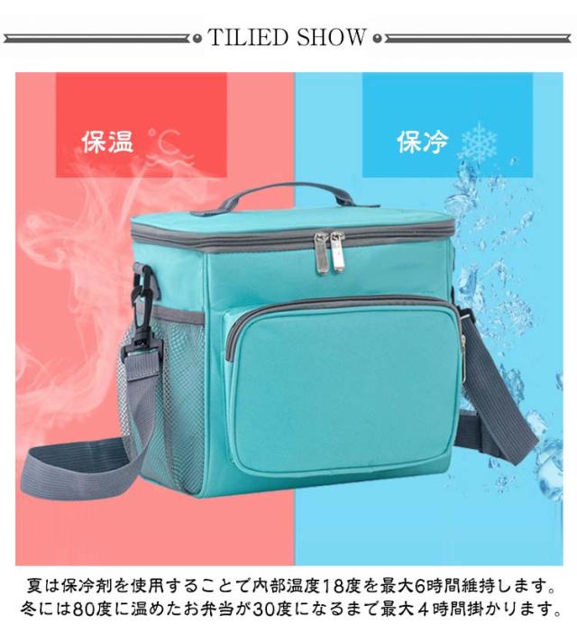 | 【10L大容量】【軽量・撥水】【多層断熱構造】 持ち運びにぴったりな10Lサイズのソフトクーラーバッグです。 600Dオックスフォード生地・5mm発泡ウレタン・防水EVAフィルムの三層構造 夏は保冷剤を使用することで内部温度18度を最大6時間維持します。冬には80度に温めたお弁当が30度になるまで最大4時間掛かります。 前側はチャック付きでスマートフォンや財布、キーケース等の収納にも適しています。 左右のポケットはメッシュ製で入れ口は伸縮するので、ペットボトルやお箸・スプーン・フォーク等のカトラリー類、またお皿やコップなどの食器類等をたっぷり収納する事も可能です。 肩掛けも出来て身軽に持ち運びが可能で、大きくて重いクーラーボックスの代わりに、ちょっとした外出の機会に気軽にご使用が頂けます。 公園遊び・ピクニック・アウトドア・お花見・BBQ・釣り・スポーツ・試合観戦・お買い物・ランチバッグ等、様々なシーンでご使用が可能です。 | |