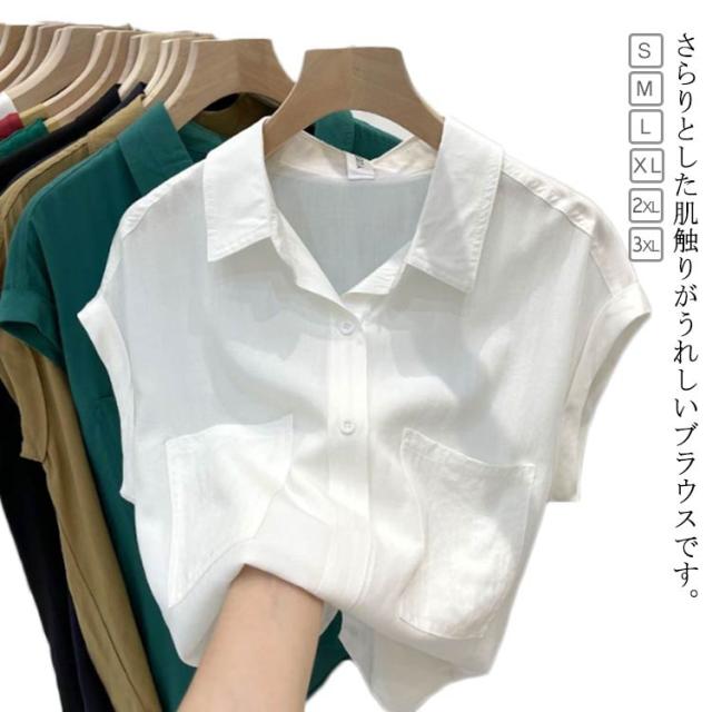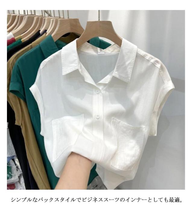半袖 とろみブラウス スキッパー レディース 夏ブラウス トップス ノーカラー フォーマル スキッパーシャツ シフォン ブラウス シワになりにくい カジュアル オフィス ブラウス 春夏 スーツ インナー トップス ビジネス 通勤 入学式 卒園式