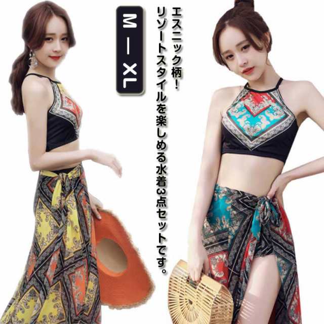 ビキニ カップ付き 3点セット 体型カバー レディース ビキニ 20代 スカート 体型カバー 水着 セパレート 水着セット ショートパンツ ビーチ オトナ女子 温泉 エスニック柄 30代 40代 露出控えめ リゾート M L XL