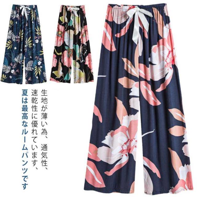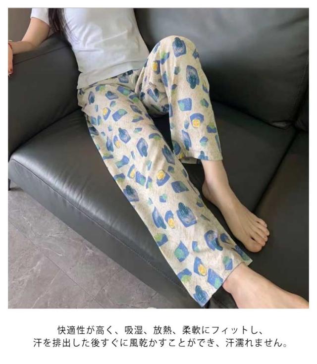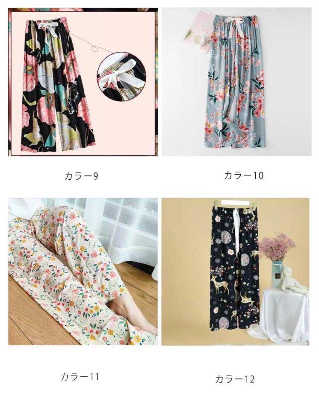 ゆったり 全20色!ルームウェア 総柄 おしゃれ かわいい ボトムス レディース リラックスパンツ ワイドパンツ 九分丈 ステテコ 薄手 全20色!ルームウェア 部屋着 涼しい レディース ルームパンツ 花柄 婦人 パジャマ ロングパンツ 9分丈