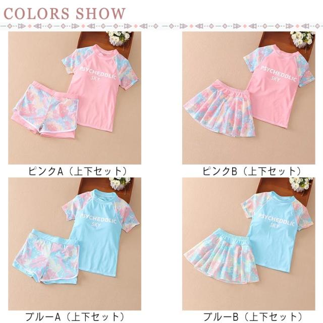水着 水着 2点セット キッズ水着 ジュニア水着 ラッシュガード 上下セット セパレート ショーツ 2点セット 半袖 ガールズ 100-150cm 小学生 スクール水着 水陸両用 スカート インナーパンツ付き 子供水着 ビーチ 海