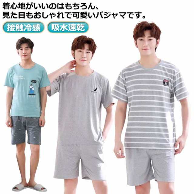 涼しい 大きいサイズ 寝間着 男物 ナイトウエア 半袖 メンズ メンズ パジャマ 半ズボン 短パン 夏用 シャツ Tシャツ ハーフパンツ 部屋着 ストレッチ 寝巻き 接触冷感 ルームウエア おしゃれ 紳士 夫 男性用 誕生日 上下セット 父の日 敬老の日 送料無料