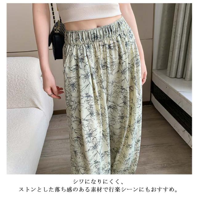 接触冷感 冷感 接触冷感 イージーパンツ 落ち感 部屋着 夏 涼感 ワイド ワイドパンツ パンツ レディース 総柄 ルームウェア ロング シルク 薄手 着?せ 体型カバー ハイウエスト ゴムウエスト ストレッチ リラックス カジュアル ヒョウ柄 ゼブラ柄 花柄