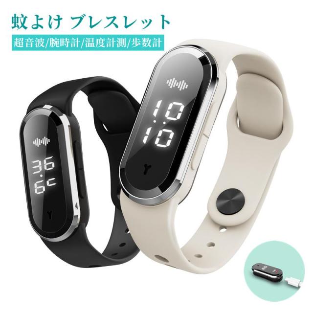 【2025新版】超音波 蚊よけブレスレット 蚊除け 安心安全 3段階調節可 腕時計 温度計測 歩数計 USB充電式 子供 大人 蚊除けリング 蚊忌避 蚊対策 長時間連続作