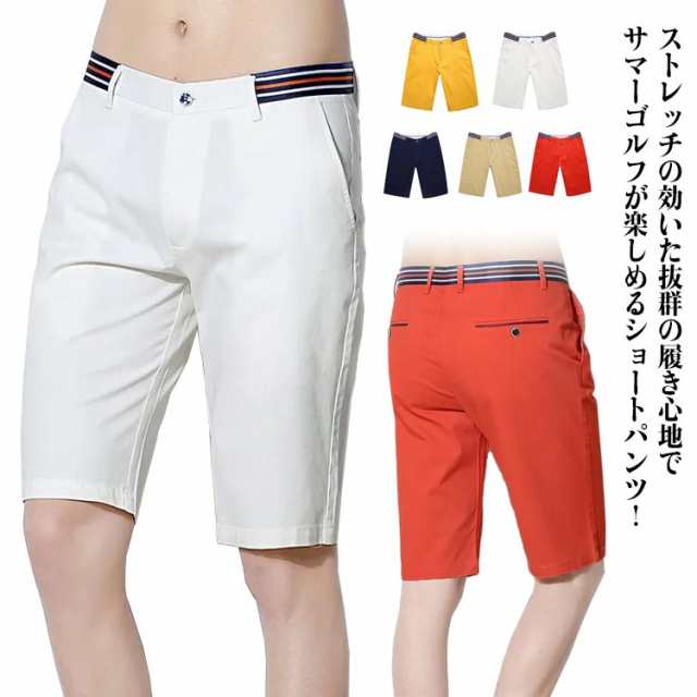 送料無料 ハーフパンツ ゴルフ ショートパンツ メンズ 大きいサイズ ゴルフウェア ゴルフパンツ ストレッチ 通気 速乾薄手 ストレッチ 伸縮 ウェストゴム 半ズボン スポーツパン テニスパンツ ハーフパン 短パン ポケット付き 無地