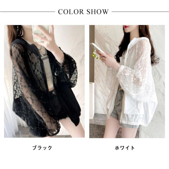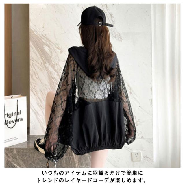 レース パーカー 薄手 レディース ジップアップパーカー フードパーカー トップス 夏パーカー フェミニン かわいい シースルー 羽織り UV対策 冷房対策 M L XL 2XL 3XL