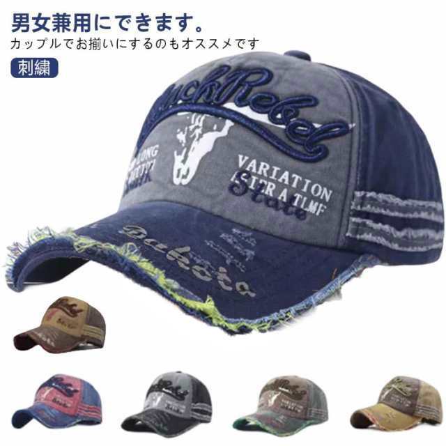 帽子 メンズ キャップ ダメージ加工 刺繍 ロゴ おしゃれ かっこいい クール カジュアル レディース ベースボールキャップ コットン 野球帽 男女兼用 アウトドア ワーク スポーツ ぼうし ユニセックス ファッション小物 大きいサイズ