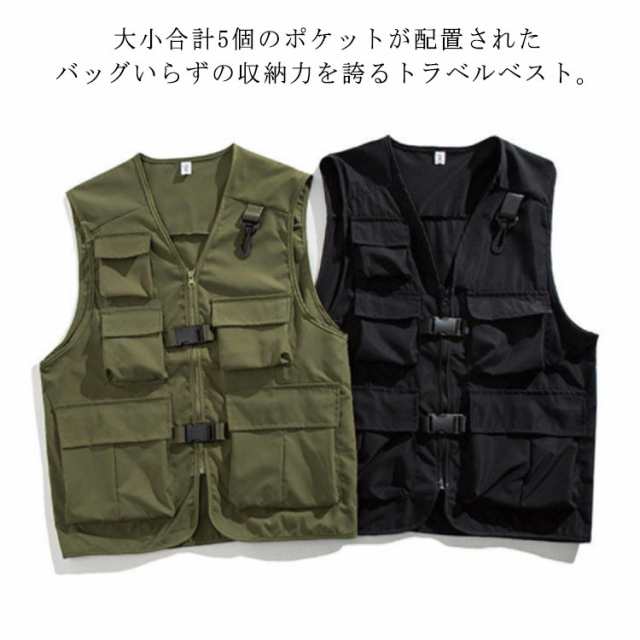 フィッシングベスト トラベルベスト 多ポケット 渓流 アウトドア ミリタリー ベスト メンズ レディース 薄手 釣り キャンプ 原宿 カジュアル ストリート ブラック 黒 カーキ 大きいサイズ【送料無料】