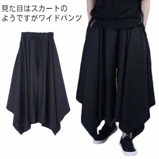 バギーパンツ メンズ レディース 男女兼用 ワイドパンツ ブラック 黒 ウエストゴム 送料無料 ドレープスカート 袴パンツ モード モード系 メンズ レディース パンツ 大きいサイズ ファッション キャロットスカート サルエル パンツ ガウチョ プリーツ ストリート系