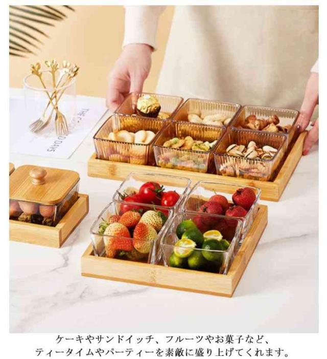 | ケーキやサンドイッチ、フルーツやお菓子など、ティータイムやパーティーを素敵に盛り上げてくれます。 9点セット(小鉢*4+蓋*4+トレー*1)で、華やかさを演出します。 ちょっとしたホームパーティーやバースディパーティーなどに、楽しい時間を演出してくれます。 | |