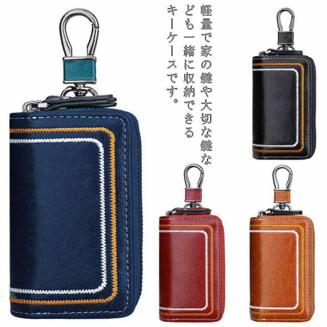 キーケース メンズ レディース スマートキーケース 車キーケース 鍵収納 カラビナ付き 2個収納 大容量 ダブルファスナー お洒落 プレゼント 高級感