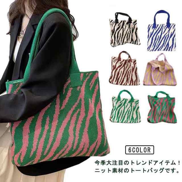 ニットバッグ 肩掛け ジャガード トートバッグ A4 大きめ ゼブラ柄 シマウマ柄 ニットトート エコバッグ 大容量 軽い 軽量 レディース 秋冬 バッグ 大人 可愛い カジュアル 通勤 通学 お洒落 韓国ファッション 送料無料