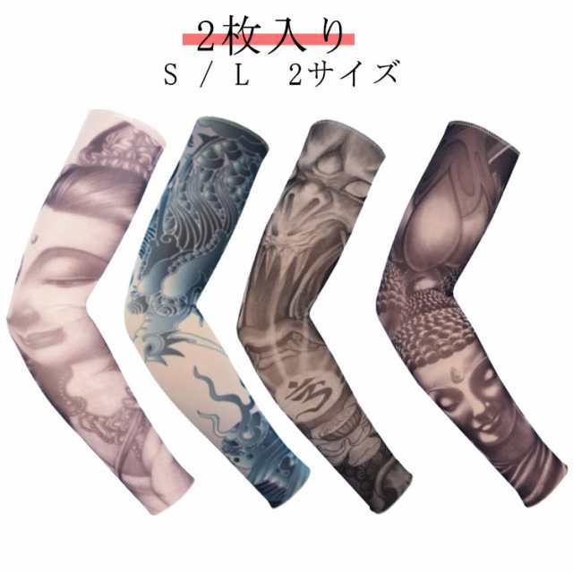 タトゥー アームカバー メンズ レディース タトゥースリーブ 2枚入り タトゥー風アームカバー おしゃれ uvカット 日焼け防止 アーム カバー 紫外線カット 腕 アームカバー tattoo 刺青 入れ墨 和柄 虎 龍 薔薇 スカル トライバル 大きいサイズあり 紫外線防止 夏用 春用