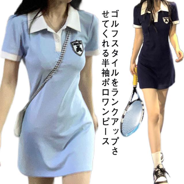 送料無料 ワンピース ポロワンピース レディース 半袖 ミニ丈 細身 ゴルフワンピース 大きいサイズ 半袖 吸汗速乾・UVカット 紫外線対策 ゆったり ポロシャツ スポーツ カジュアル レディースファッション カジュアル おしゃれ かわいい 韓国風