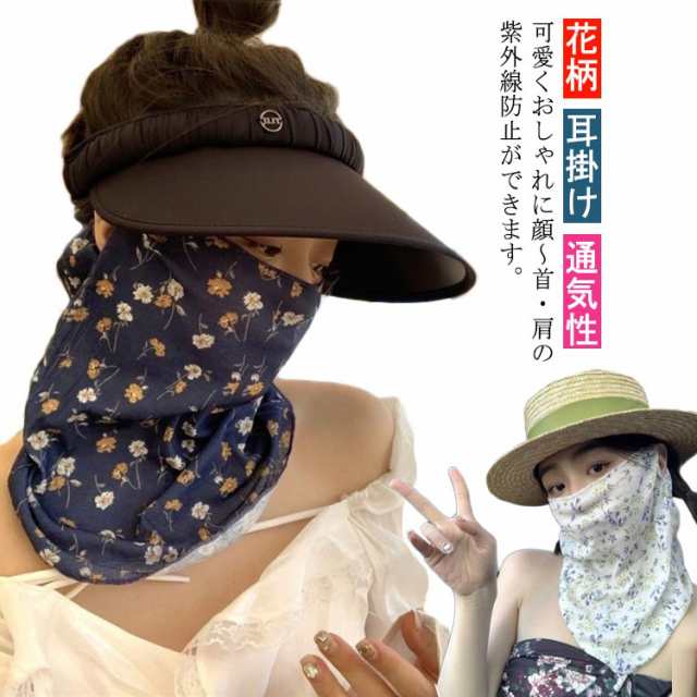 送料無料 フェイスマスク フェイスカバー フェイスガード ネックガード レディース 花柄 耳掛け 首周りガード 首肩ガード 冷感 ひんやり 日焼け対策 日よけ 通気性 紫外線防止 ロング 長い 自転車 バイク アウトドア 農作業 ガーデニング ランニング 散歩
