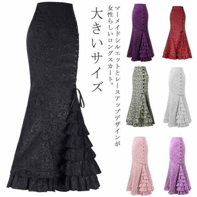 マーメイドスカート 春夏 ボトムス ティアード ジャガード柄 ロング フレアスカート レディース マキシスカート ロングスカート 大きいサイズ 体型カバー 上品 タイトスカート きれいめ フェミニン Aライン オフィス カジュアル 通勤 結婚式 春 レースアップ