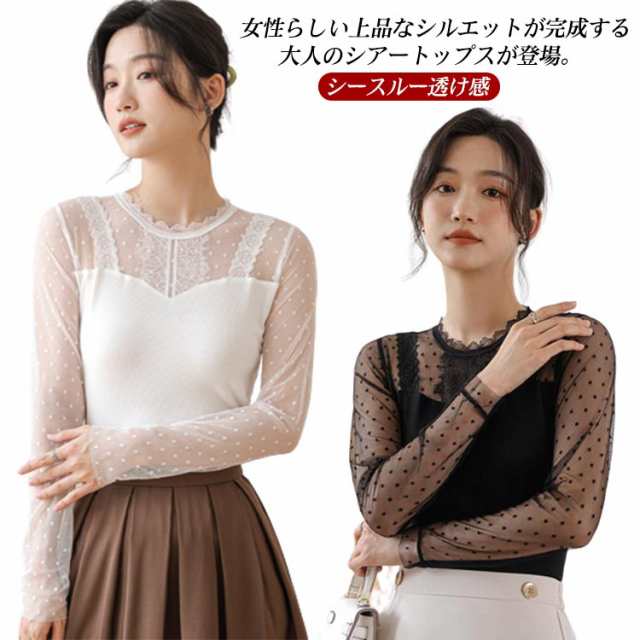 UVカット 薄手 シースルー透け感 送料無料 長袖 シアートップス トップス インナー キレイめ 透かしレース 肌見せ 重ね着 レイヤード クルーネック きれいめ Tシャツ カットソー シンプル おしゃれ 可愛い レディース