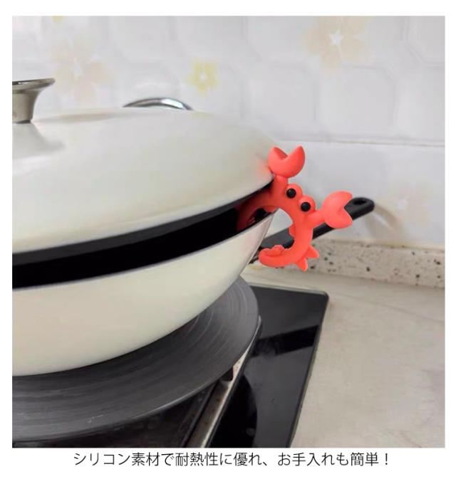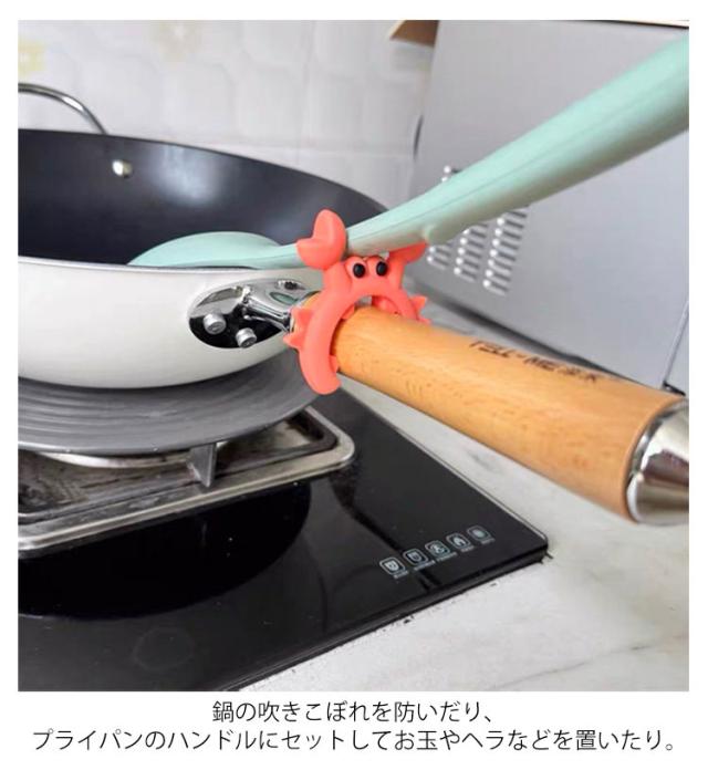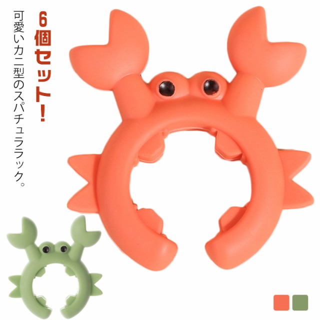 | 6個セット!可愛いカニ型のスパチュララック。 クリップタイプなので取り付けも簡単♪ 鍋の吹きこぼれを防いだり、プライパンのハンドルにセットしてお玉やヘラなどを置いたり。 シリコン素材で耐熱性に優れ、お手入れも簡単! | |