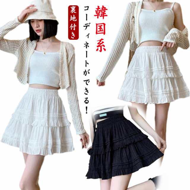 スカート レディース ショート フリル ハイウエスト ミニスカート Aライン インパン付き ミニスカート 美脚 ウエストゴム フレアスカート カジュアル 裏地付き ボトムス 脚長効果 きれいめ お洒落 可愛い
