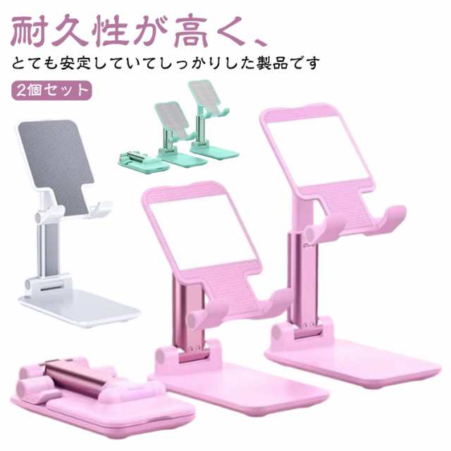 在宅 スマホスタンド スマホ 折りたたみ 2個セット 携帯用 自由調節 スマホホルダー 一体型 卓上 充電しながら 角度調整 高さ調整 携帯スタンド 滑り止め オフィス 2個セット キッチン トラック お風呂 オンライン会議