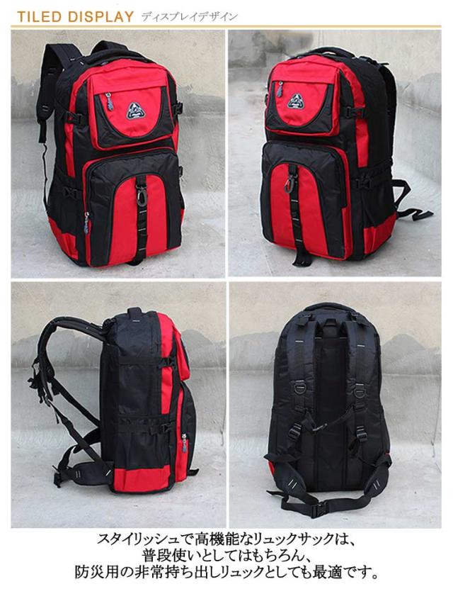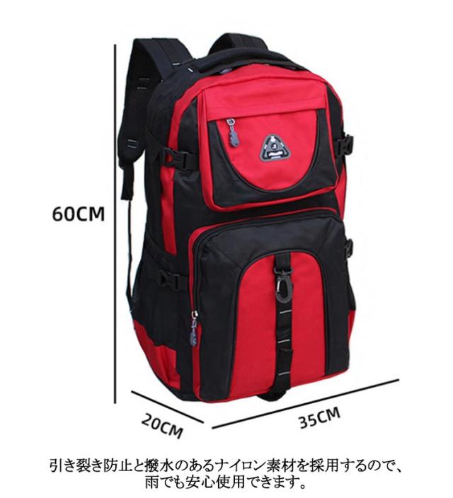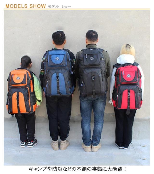 | 大容量60L 防災リュック&撥水加工 20インチのスーツケースと同じくらいの容量があります サイドポケットx2:ペットボトルや水筒、折り畳み傘の保管におすすめ カラナビ付き:何かを引っ掛ける用途で普段使いやすい 容量が勿論、耐荷重性も抜群 スタイリッシュで高機能なリュックサックは、普段使いとしてはもちろん、 防災用の非常持ち出しリュックとしても最適です。 引き裂き防止と撥水のあるナイロン素材を採用するので、雨でも安心使用できます。 キャンプや防災などの不測の事態に大活躍! | |