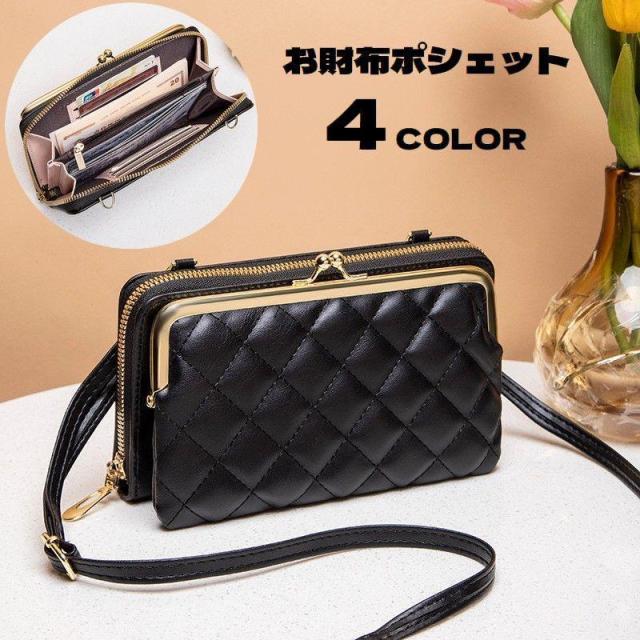 ショルダーバッグ お財布ショルダー お財布ポシェット レディース ウォレット がま口 ファスナー 肩掛け 斜め掛け レザー調 キルティング お札入れ