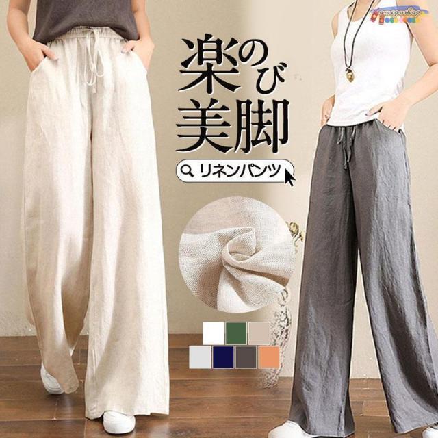 ワイドパンツ レディース パンツ ウエストゴム チノパン ズボン ロング ボトムス ゆったり イージーパンツ ガウチョ カジュアル 春夏 体型カバー