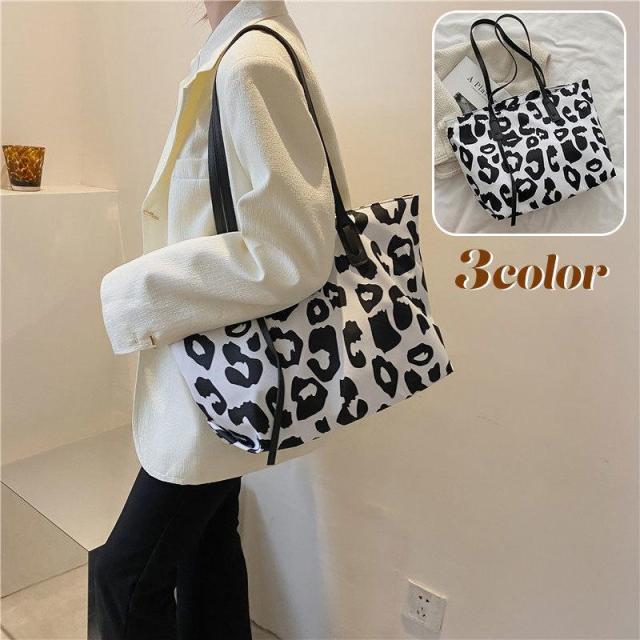 トートバッグ ショルダーバッグ レディース 女性 肩掛け キャンバス地 大容量 ファスナー ジップ ヒョウ柄 レオパード柄 おしゃれ カジュアル