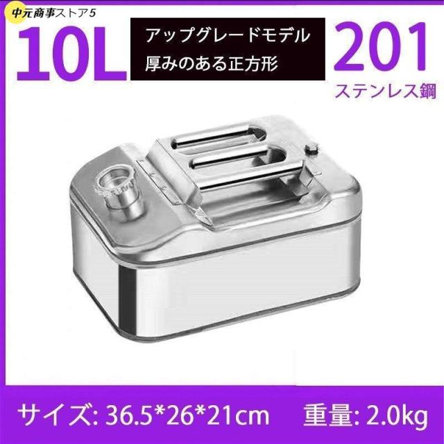 最新型 ガソリン携行缶 タンク ポータブル燃料タンク 軽量耐久 ステンレス 防錆 防爆 持ち運び便利 10L