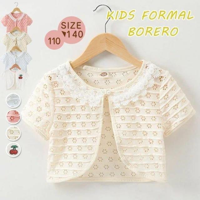 子供 ボレロ カーディガン キッズ 半袖 薄手 女の子 透かし編み 子供服 こども服 子ども服 無地 透け ビーズ 春 夏 110cm 120cm 130cm 140cm 150cm 通園 通学 ホワイト
