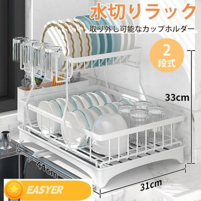 水切りラック シンク上 水切り 食器置き 2段 水切りかご ステンレス シンクサイド 水が流れる 大容量食器 水切